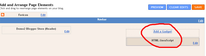 Saat ini tentunya teman bisa melihat widget addelement untuk gadget tepat disebelah atau di bawah judul blog (teman bisa melihatnya pada Dashboard >> Design), atau bisa dilihat seperti gambar berikut:
